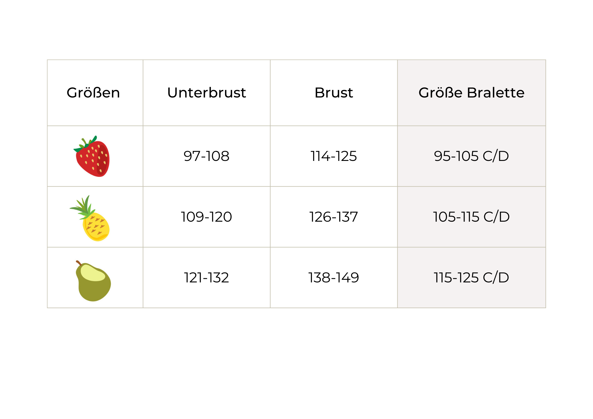 Schau dann in unsere Größentabelle und entdecke, welches Früchtchen du bist.
